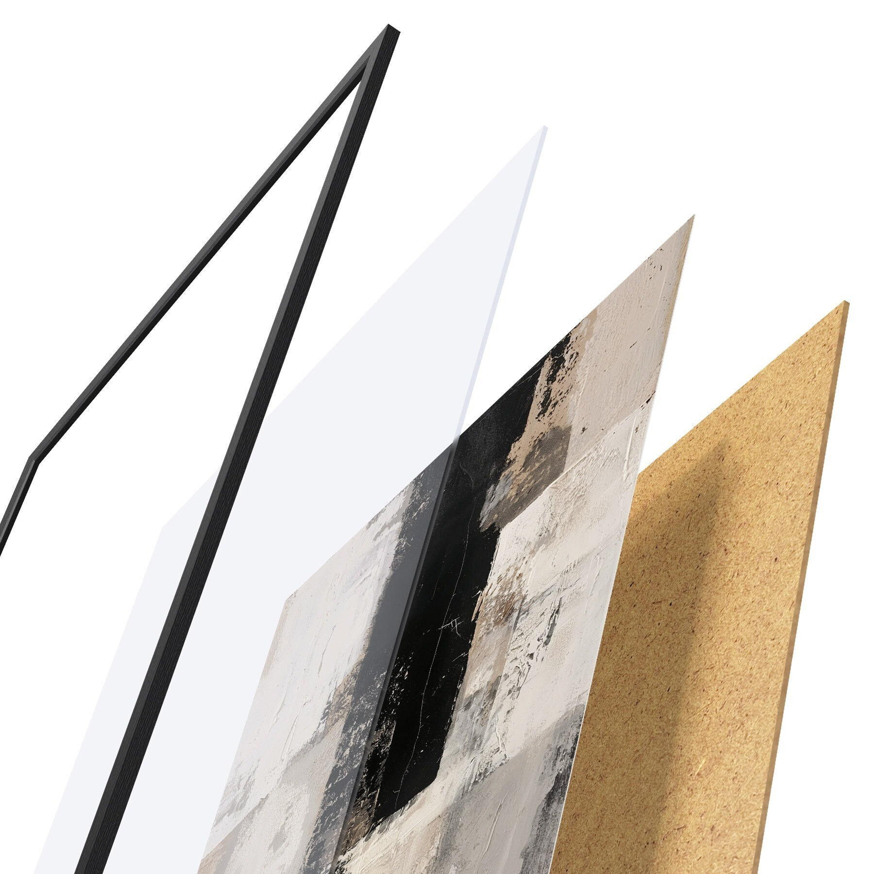 Plagát sa skladá z rámu, plexiskla, vytlačeného obrazu a podkladu z drevotriesky. Plagát možno okamžite zavesiť na stenu vďaka úchytom na zadnej strane.