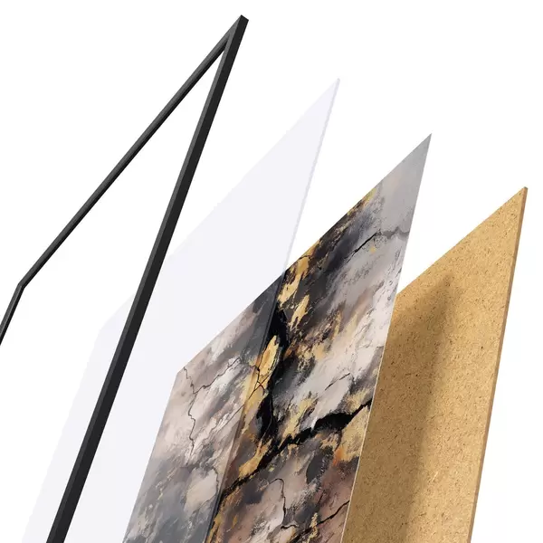 Plagát sa skladá z rámu, plexiskla, vytlačeného obrazu a podkladu z drevotriesky. Plagát možno okamžite zavesiť na stenu vďaka úchytom na zadnej strane.