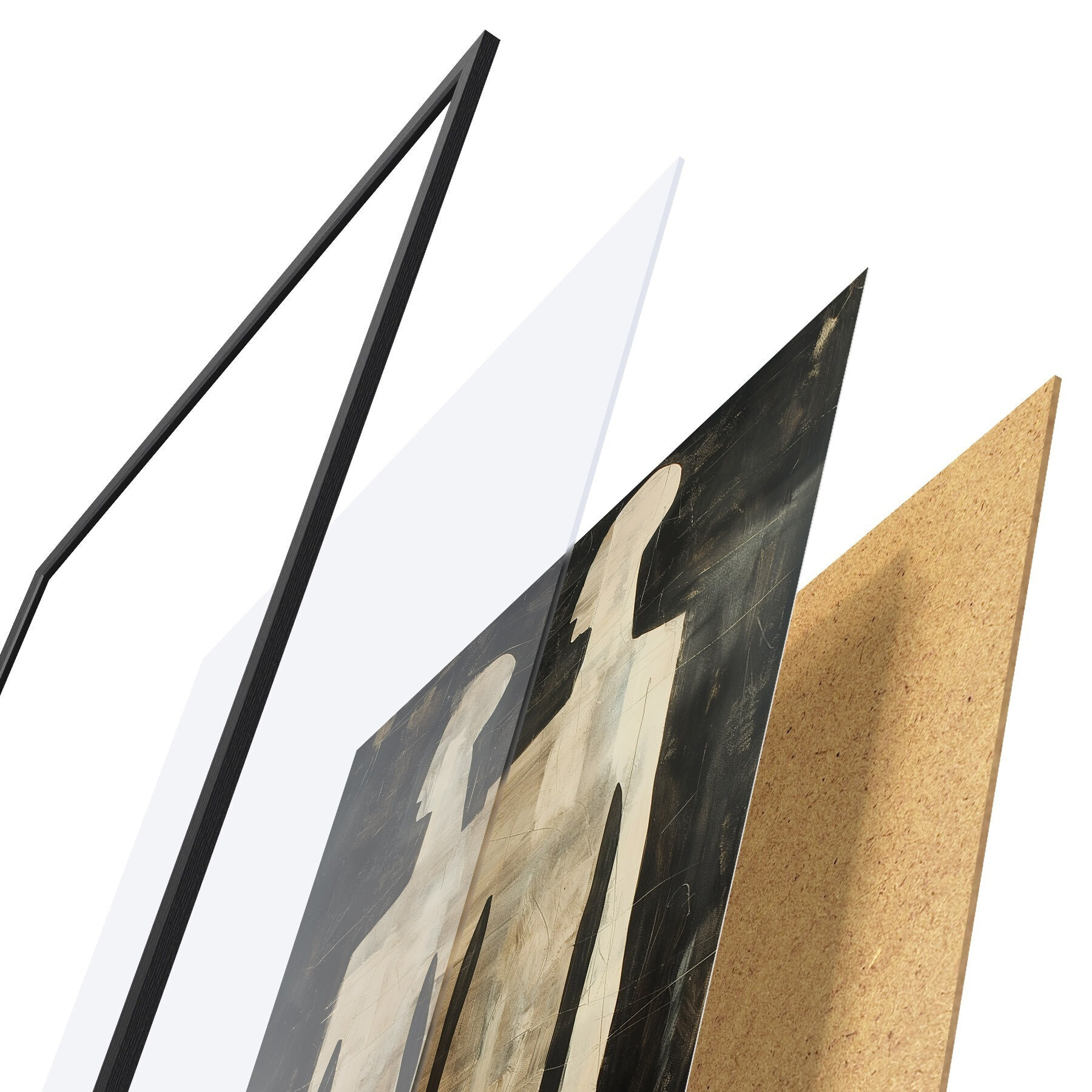 Plagát sa skladá z rámu, plexiskla, vytlačeného obrazu a podkladu z drevotriesky. Plagát možno okamžite zavesiť na stenu vďaka úchytom na zadnej strane.