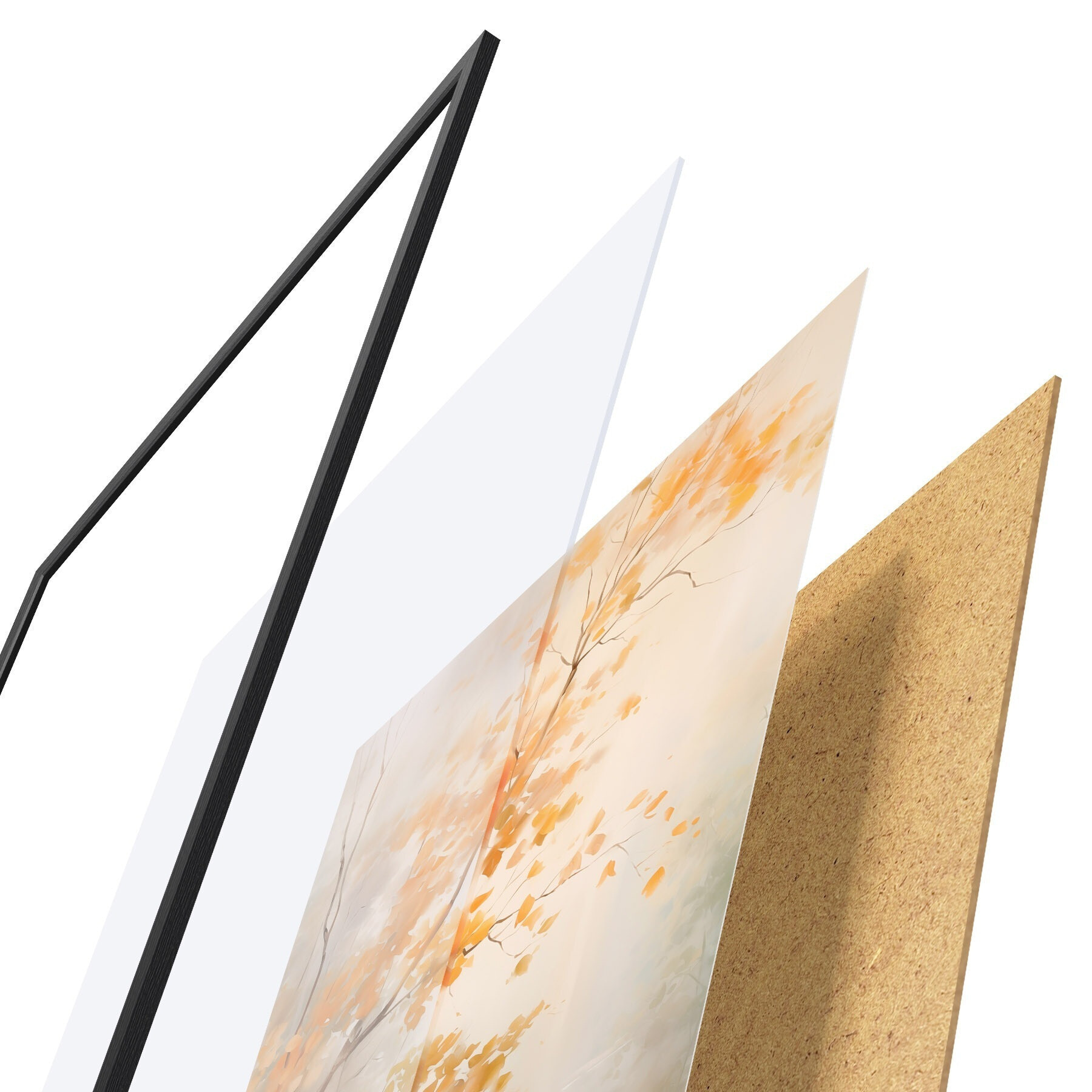 Plagát sa skladá z rámu, plexiskla, vytlačeného obrazu a podkladu z drevotriesky. Plagát možno okamžite zavesiť na stenu vďaka úchytom na zadnej strane.
