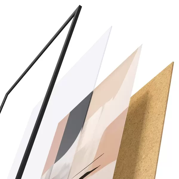 Plagát sa skladá z rámu, plexiskla, vytlačeného obrazu a podkladu z drevotriesky. Plagát možno okamžite zavesiť na stenu vďaka úchytom na zadnej strane.