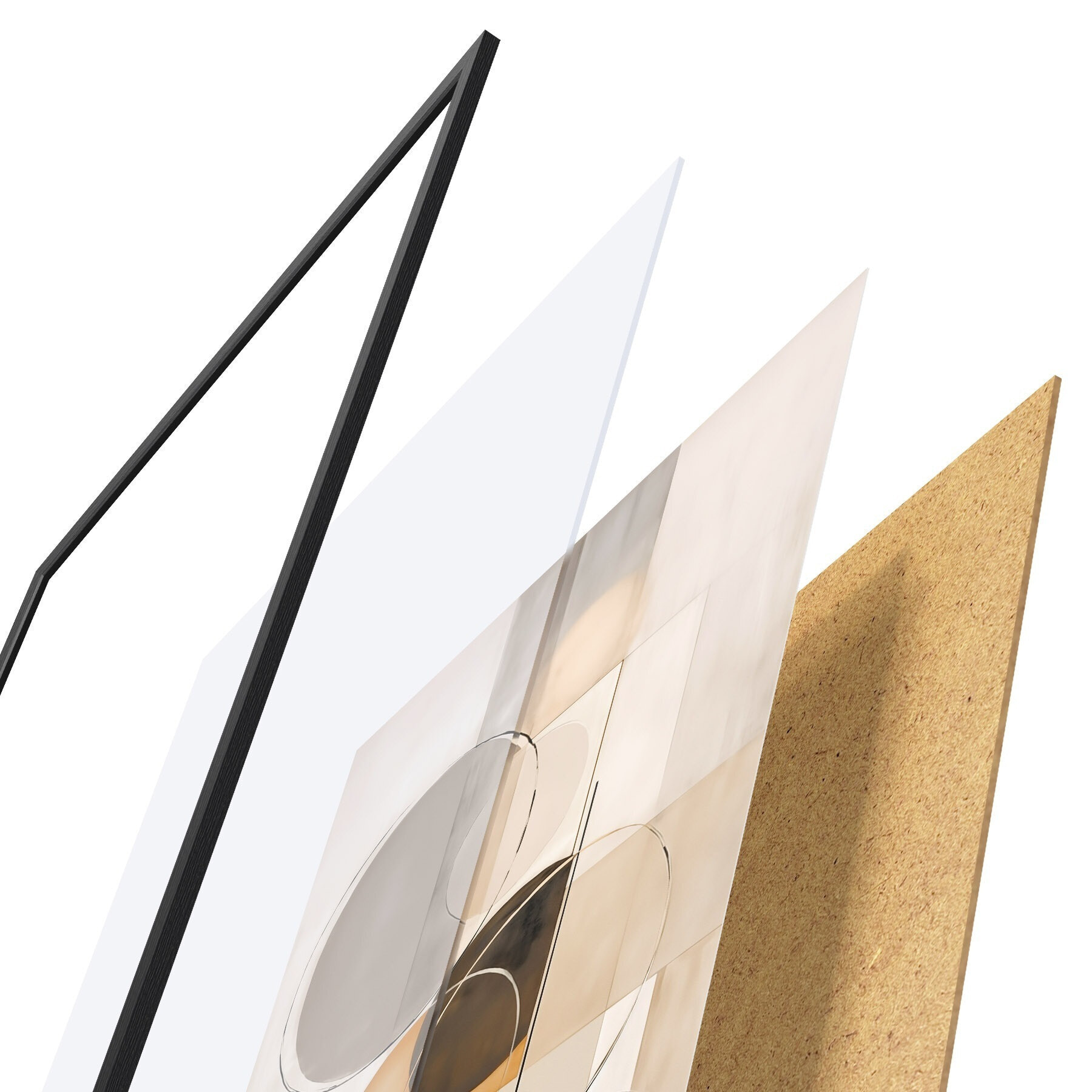 Plagát sa skladá z rámu, plexiskla, vytlačeného obrazu a podkladu z drevotriesky. Plagát možno okamžite zavesiť na stenu vďaka úchytom na zadnej strane.