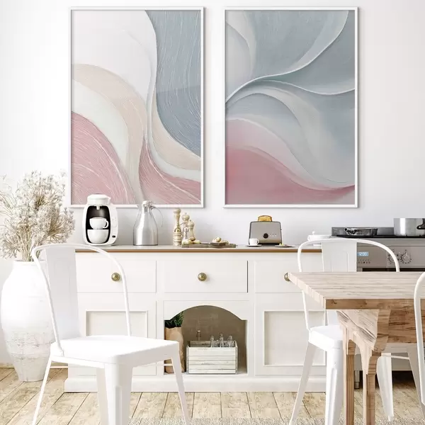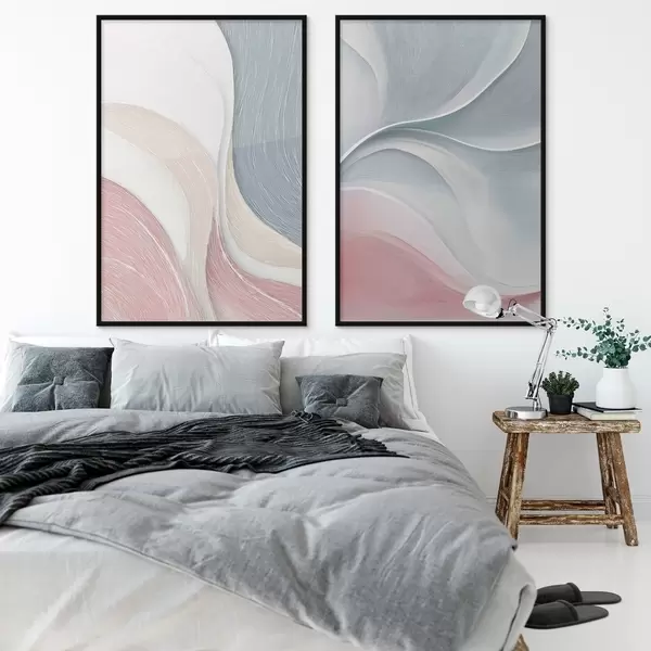 Plagáty Abstraktné vlny v ružovo-béžovo-modrých odtieňoch Nr d00874