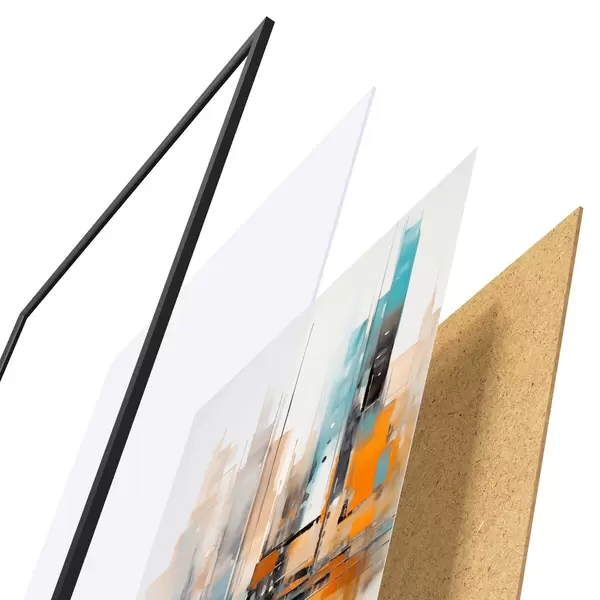 Plagát sa skladá z rámu, plexiskla, vytlačeného obrazu a podkladu z drevotriesky. Plagát možno okamžite zavesiť na stenu vďaka úchytom na zadnej strane.