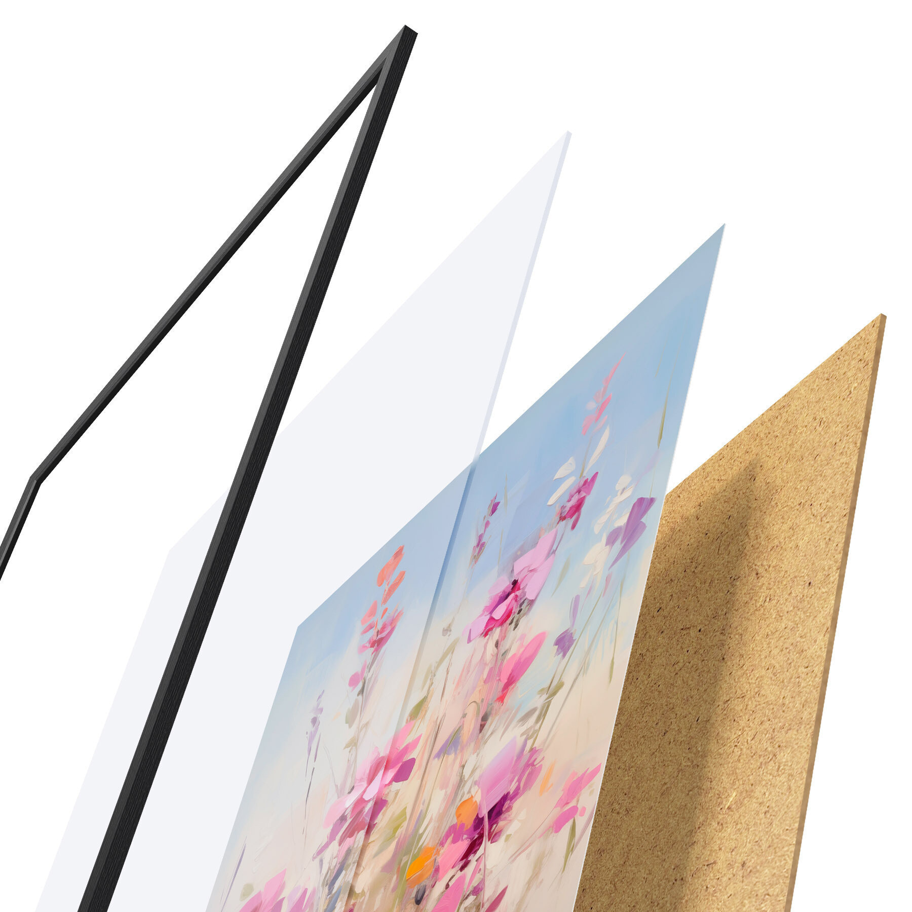 Plagát sa skladá z rámu, plexiskla, vytlačeného obrazu a podkladu z drevotriesky. Plagát možno okamžite zavesiť na stenu vďaka úchytom na zadnej strane.