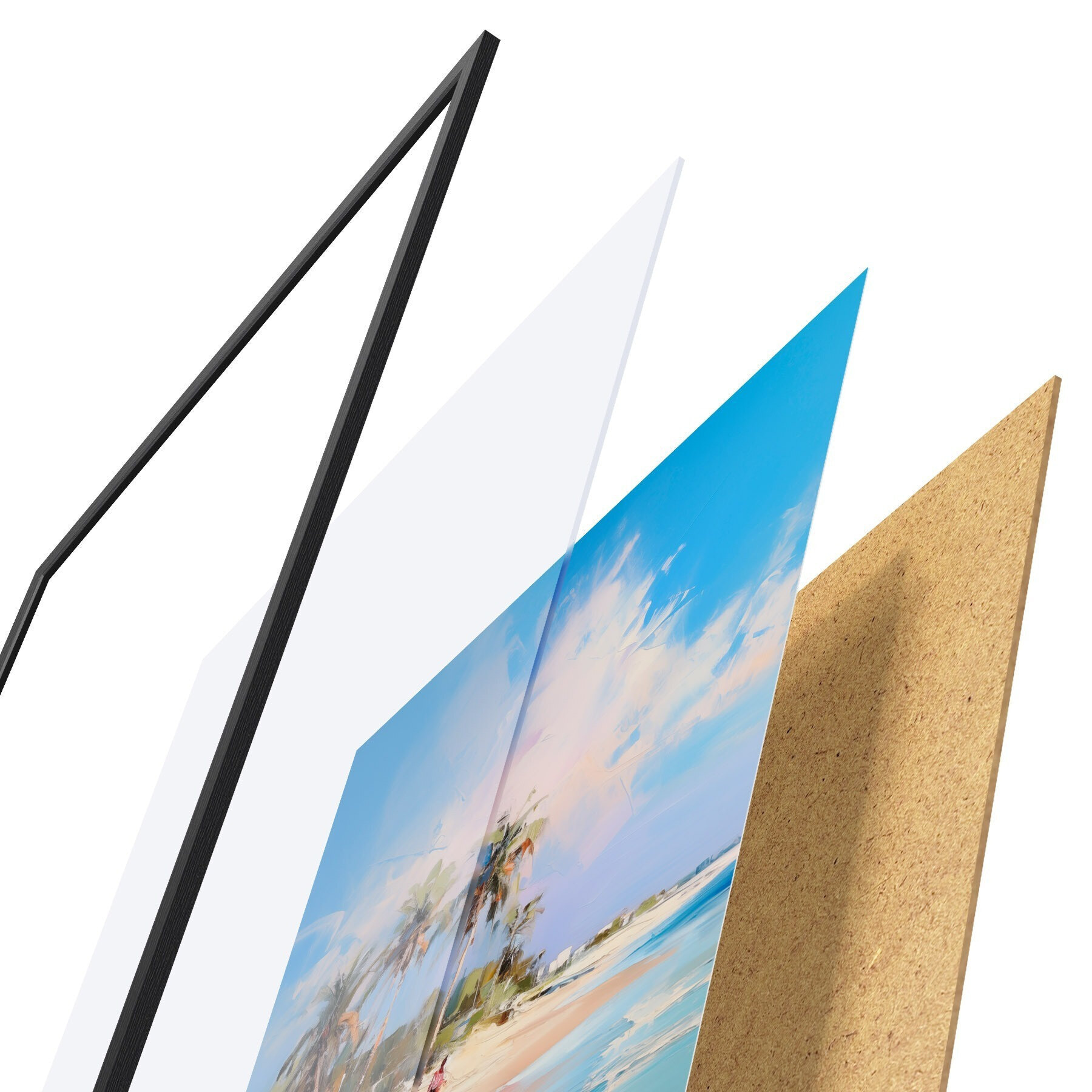 Plagát sa skladá z rámu, plexiskla, vytlačeného obrazu a podkladu z drevotriesky. Plagát možno okamžite zavesiť na stenu vďaka úchytom na zadnej strane.