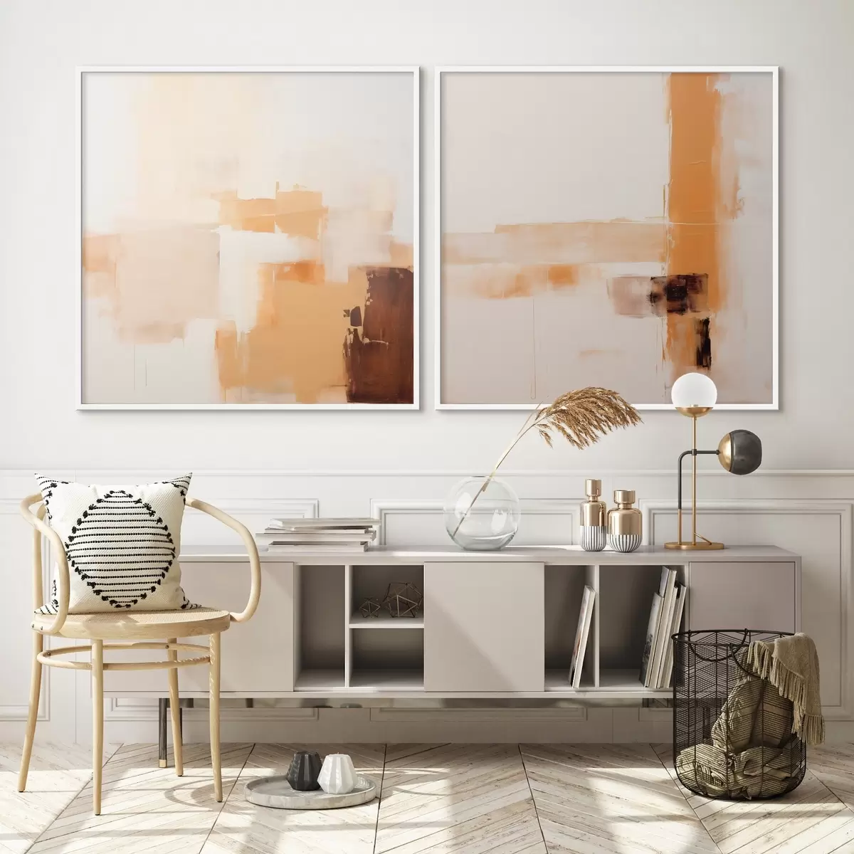 Plagáty Abstraktná dvojdielna kompozícia v béžovej a hnedej farbe Nr d00891