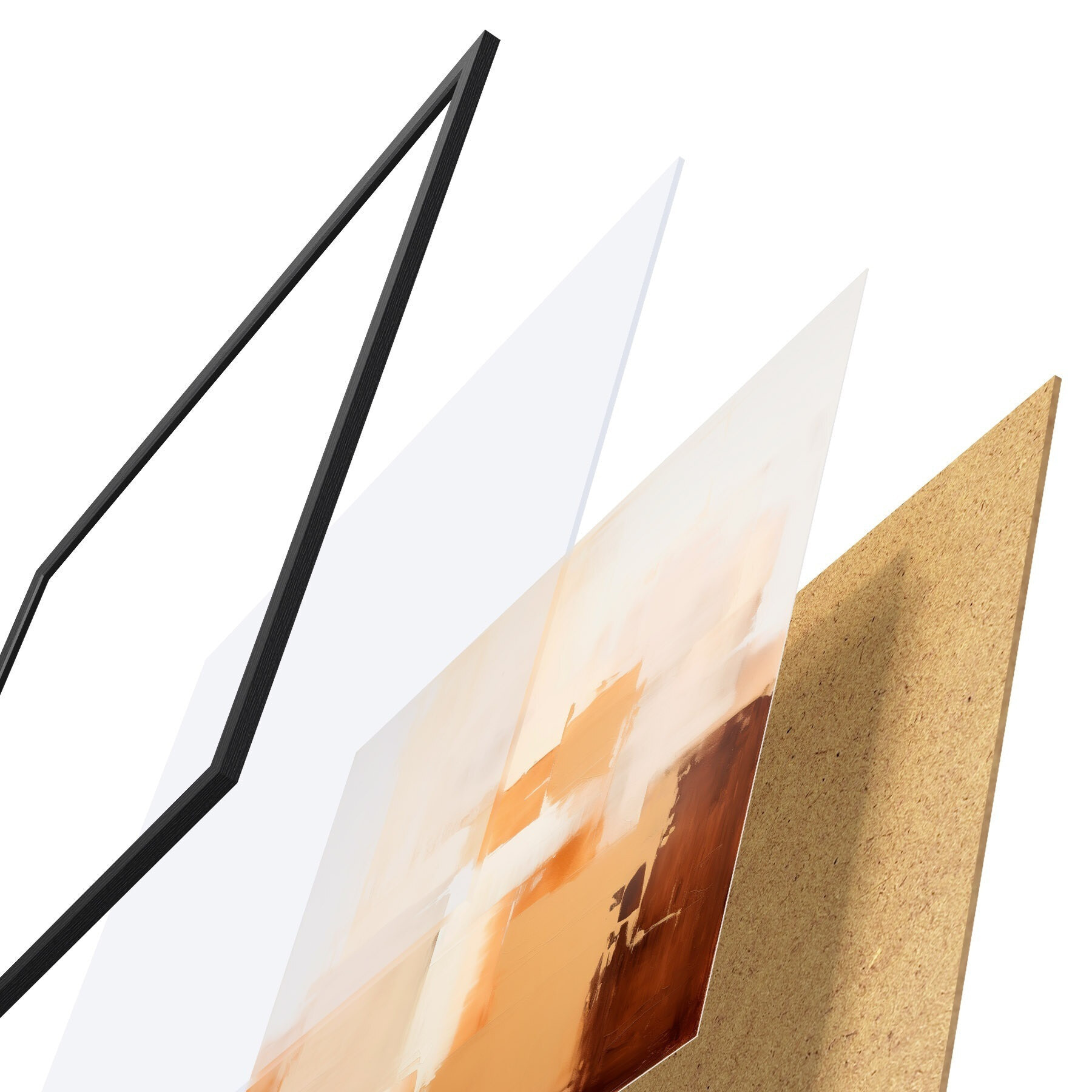 Plagát sa skladá z rámu, plexiskla, vytlačeného obrazu a podkladu z drevotriesky. Plagát možno okamžite zavesiť na stenu vďaka úchytom na zadnej strane.