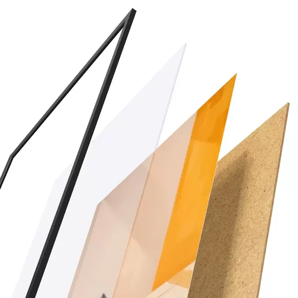 Plagát sa skladá z rámu, plexiskla, vytlačeného obrazu a podkladu z drevotriesky. Plagát možno okamžite zavesiť na stenu vďaka úchytom na zadnej strane.