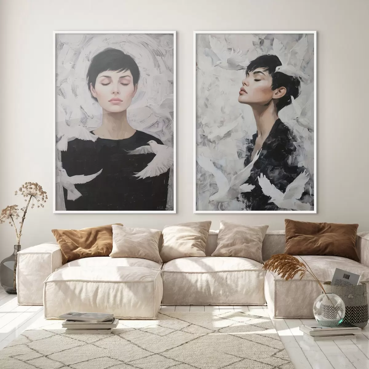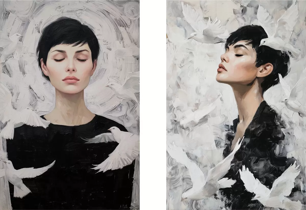 Plagáty Žena s holubicami Nr d00923