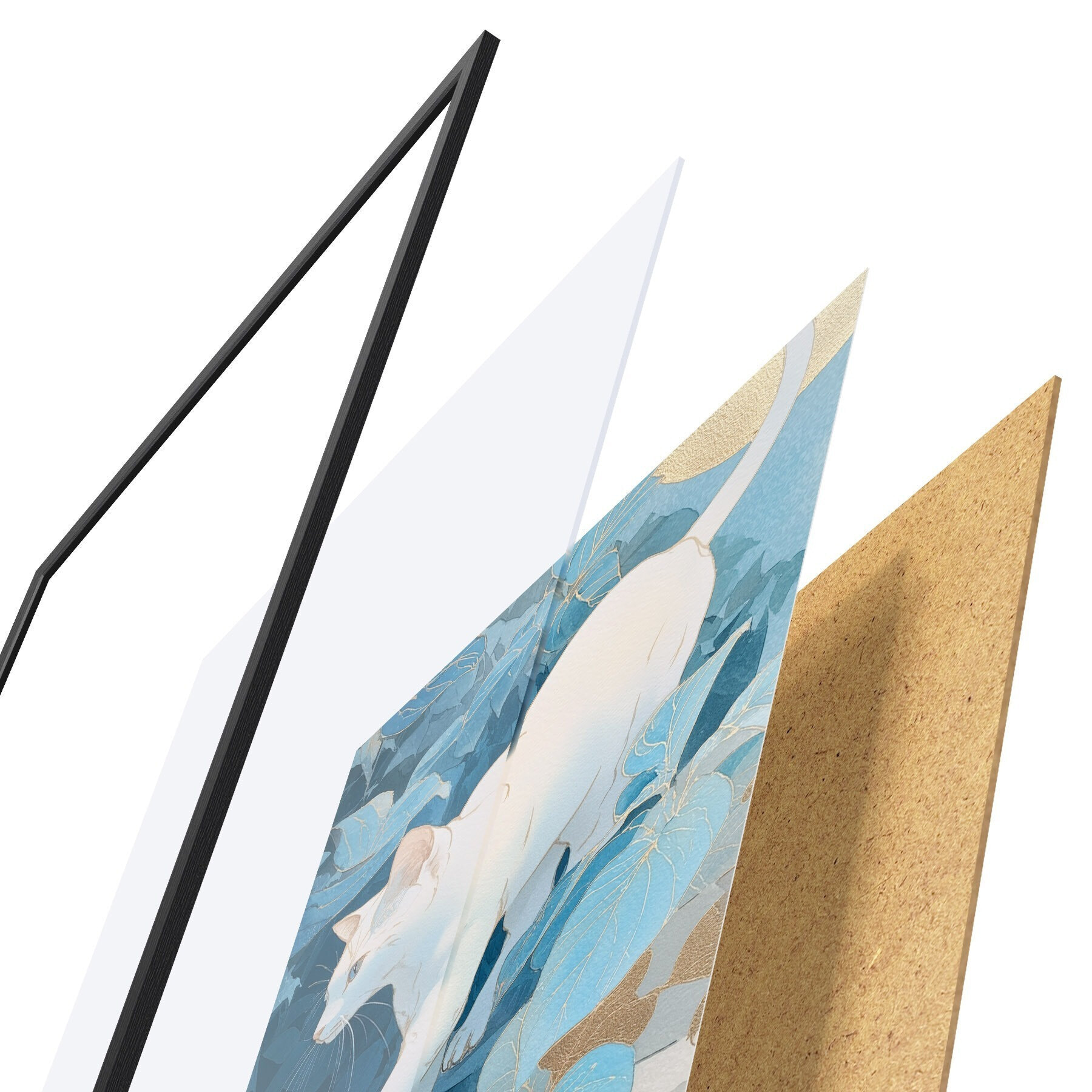 Plagát sa skladá z rámu, plexiskla, vytlačeného obrazu a podkladu z drevotriesky. Plagát možno okamžite zavesiť na stenu vďaka úchytom na zadnej strane.
