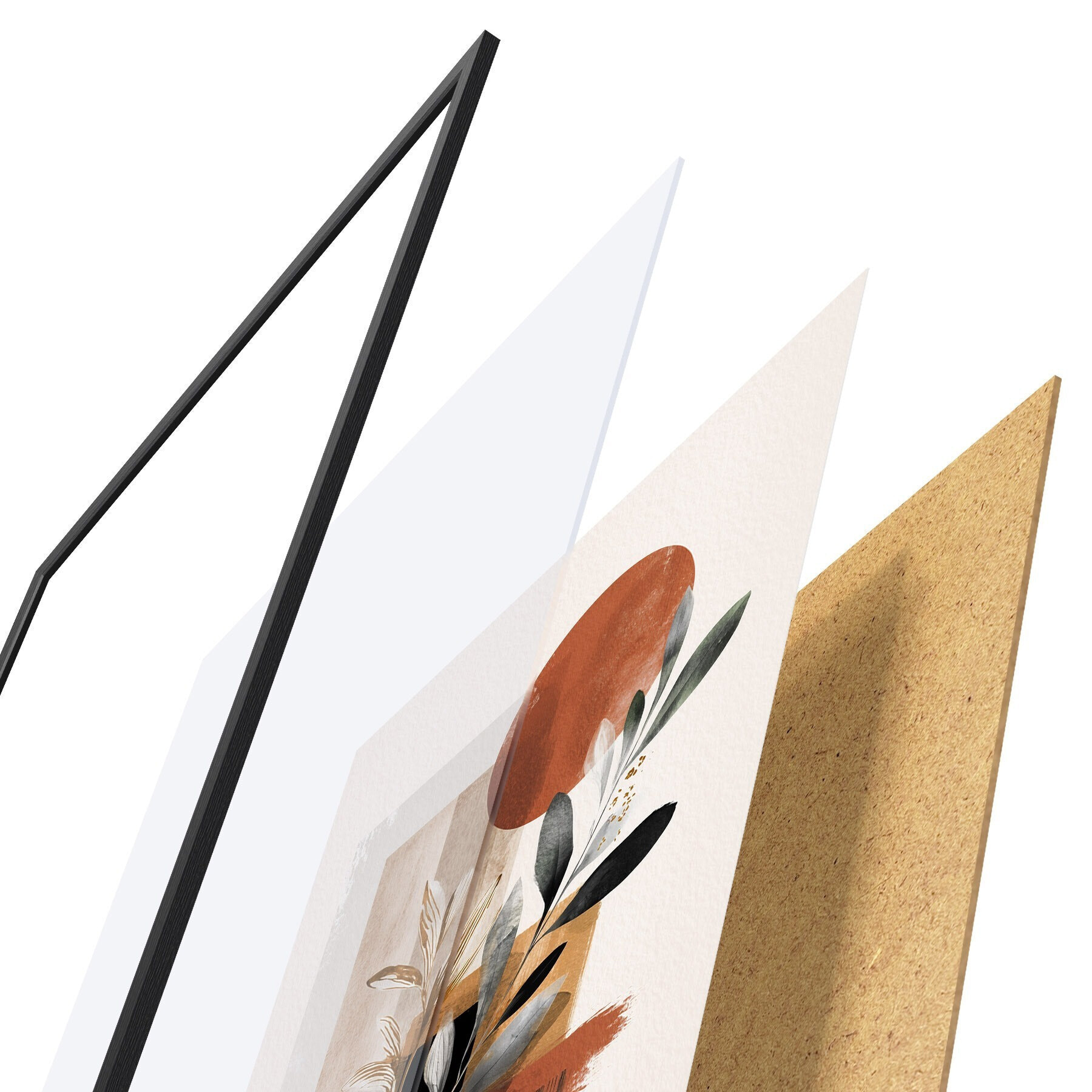 Plagát sa skladá z rámu, plexiskla, vytlačeného obrazu a podkladu z drevotriesky. Plagát možno okamžite zavesiť na stenu vďaka úchytom na zadnej strane.