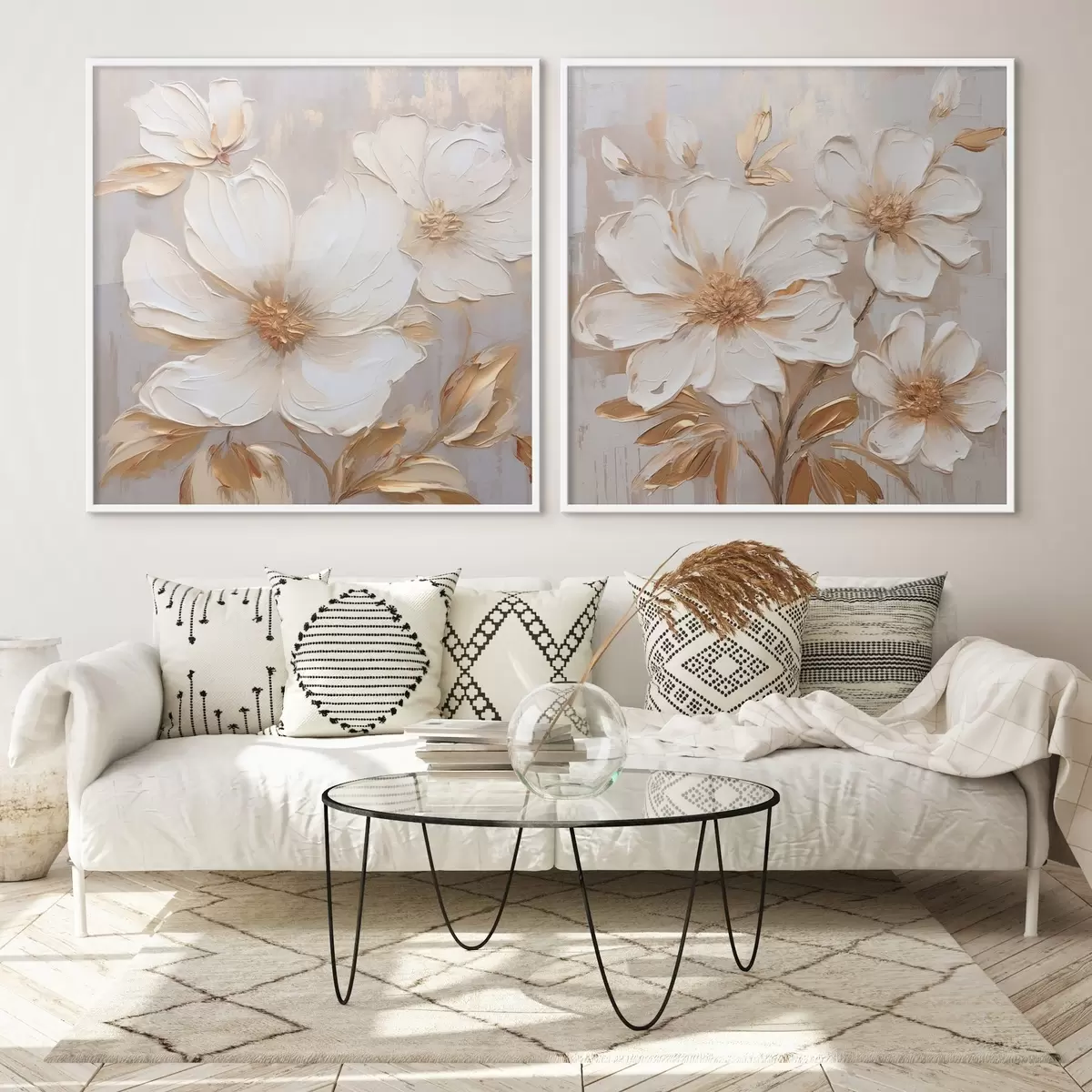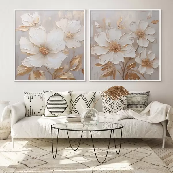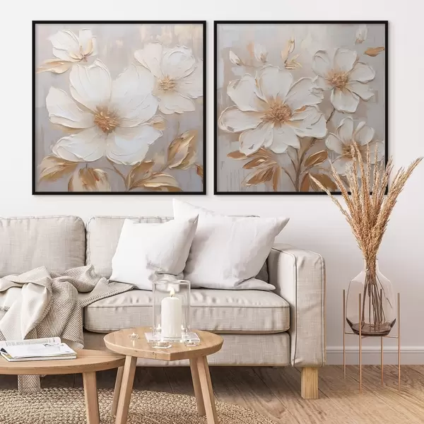 Plagáty Diptych s veľkými kvetmi v svetlých teplých farbách Nr d00927