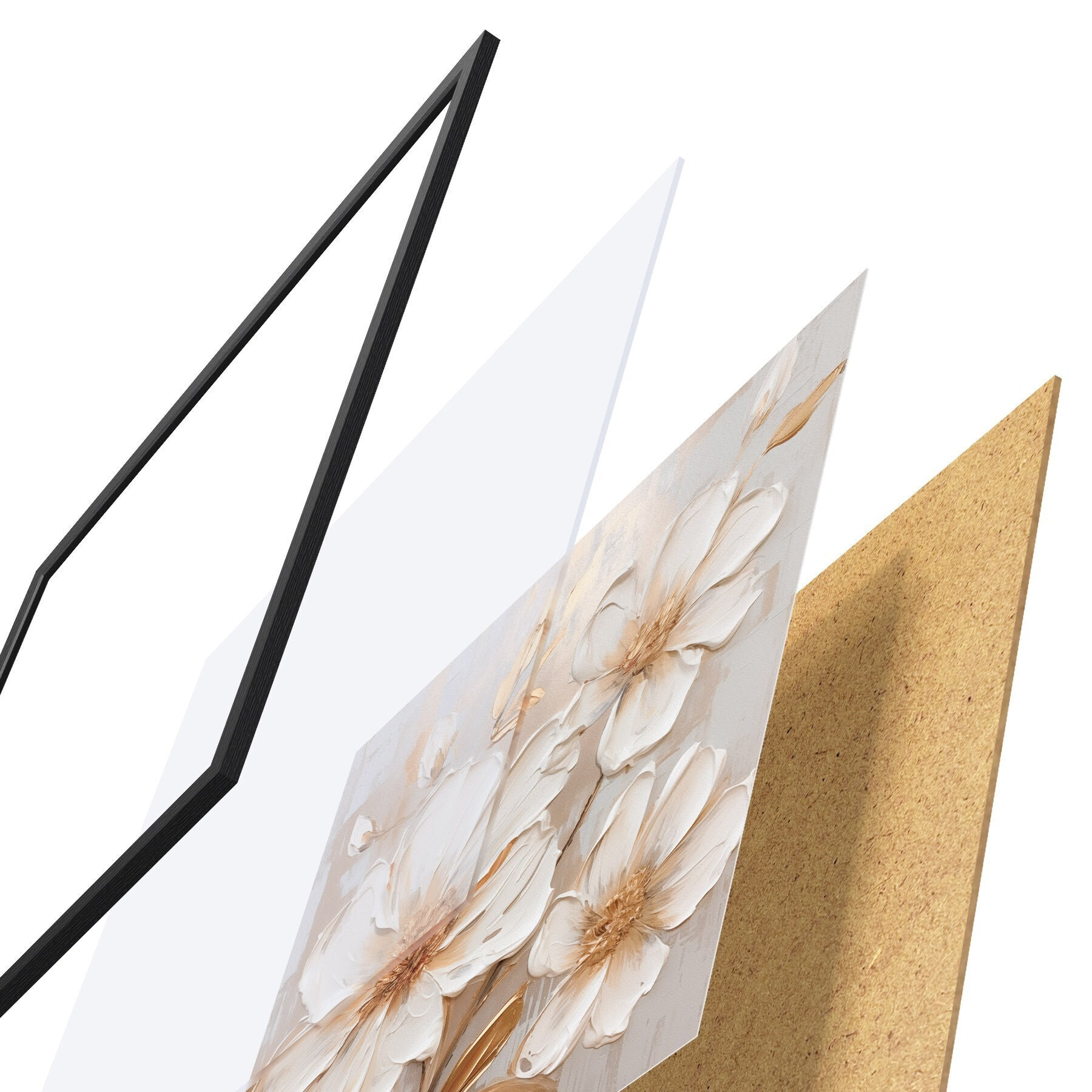 Plagát sa skladá z rámu, plexiskla, vytlačeného obrazu a podkladu z drevotriesky. Plagát možno okamžite zavesiť na stenu vďaka úchytom na zadnej strane.