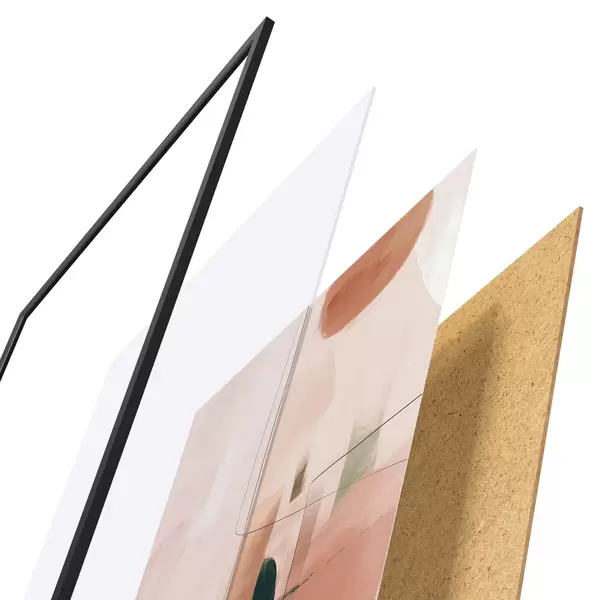 Plagát sa skladá z rámu, plexiskla, vytlačeného obrazu a podkladu z drevotriesky. Plagát možno okamžite zavesiť na stenu vďaka úchytom na zadnej strane.