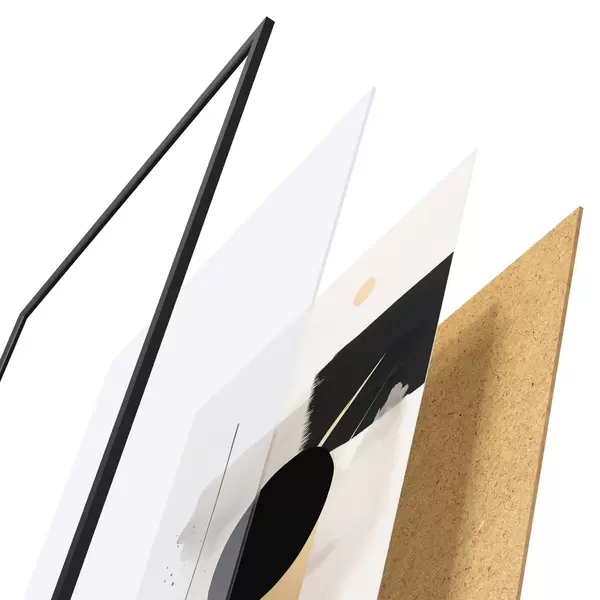 Plagát sa skladá z rámu, plexiskla, vytlačeného obrazu a podkladu z drevotriesky. Plagát možno okamžite zavesiť na stenu vďaka úchytom na zadnej strane.
