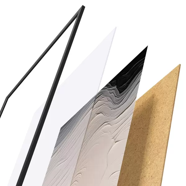 Plagát sa skladá z rámu, plexiskla, vytlačeného obrazu a podkladu z drevotriesky. Plagát možno okamžite zavesiť na stenu vďaka úchytom na zadnej strane.