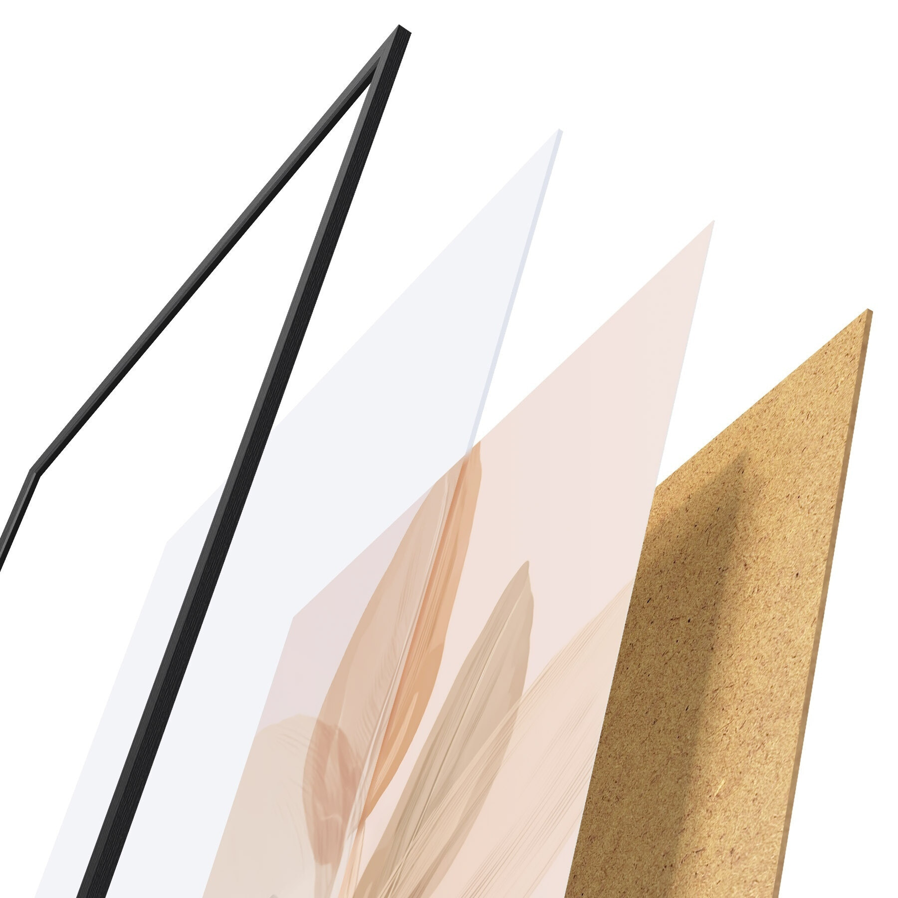 Plagát sa skladá z rámu, plexiskla, vytlačeného obrazu a podkladu z drevotriesky. Plagát možno okamžite zavesiť na stenu vďaka úchytom na zadnej strane.