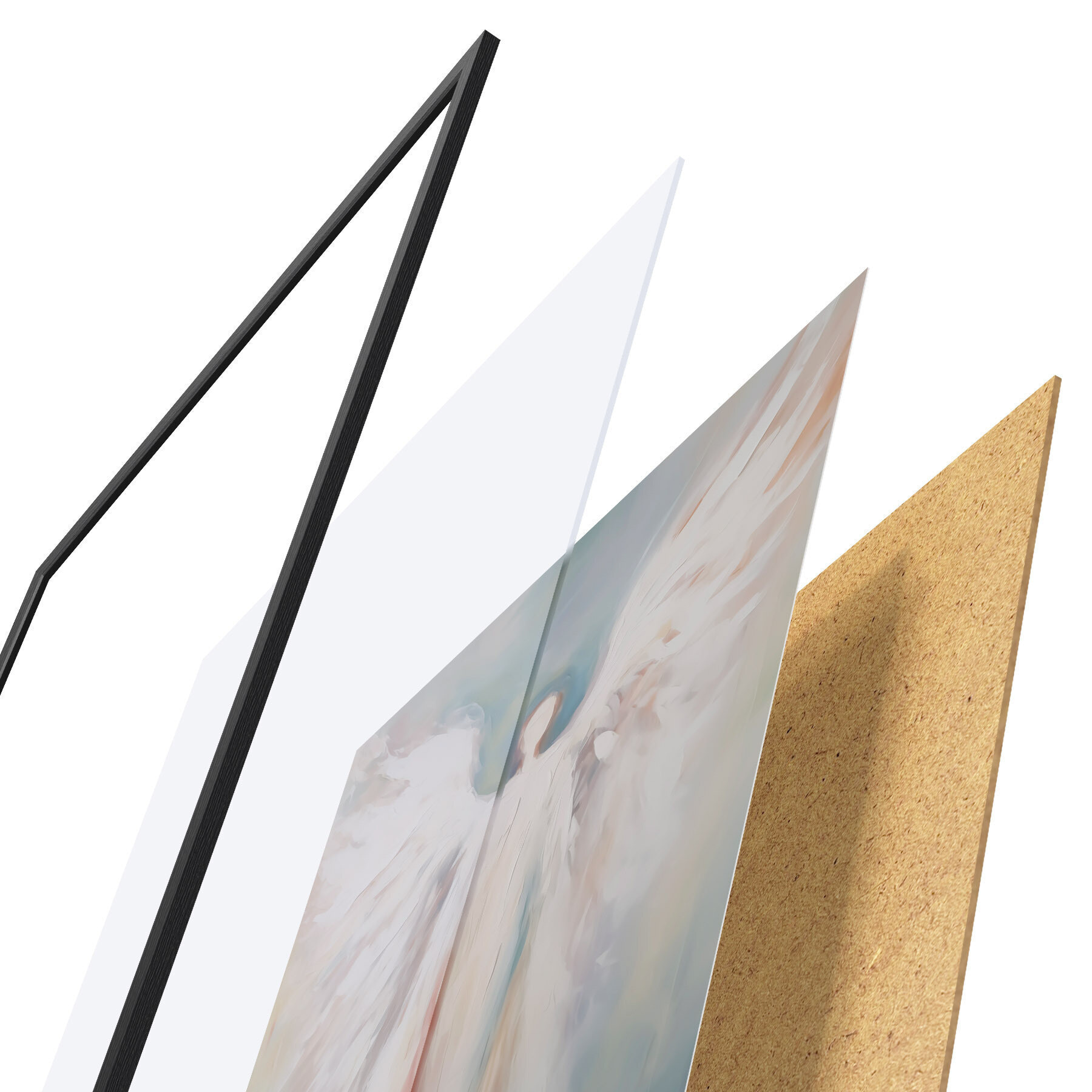 Plagát sa skladá z rámu, plexiskla, vytlačeného obrazu a podkladu z drevotriesky. Plagát možno okamžite zavesiť na stenu vďaka úchytom na zadnej strane.
