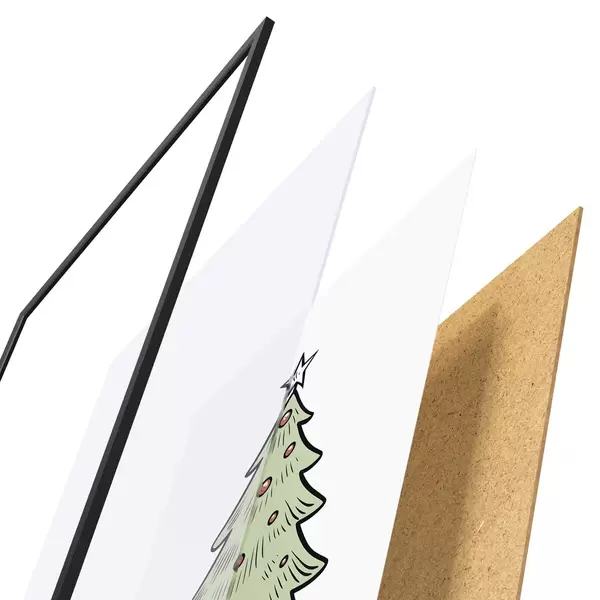 Plagát sa skladá z rámu, plexiskla, vytlačeného obrazu a podkladu z drevotriesky. Plagát možno okamžite zavesiť na stenu vďaka úchytom na zadnej strane.