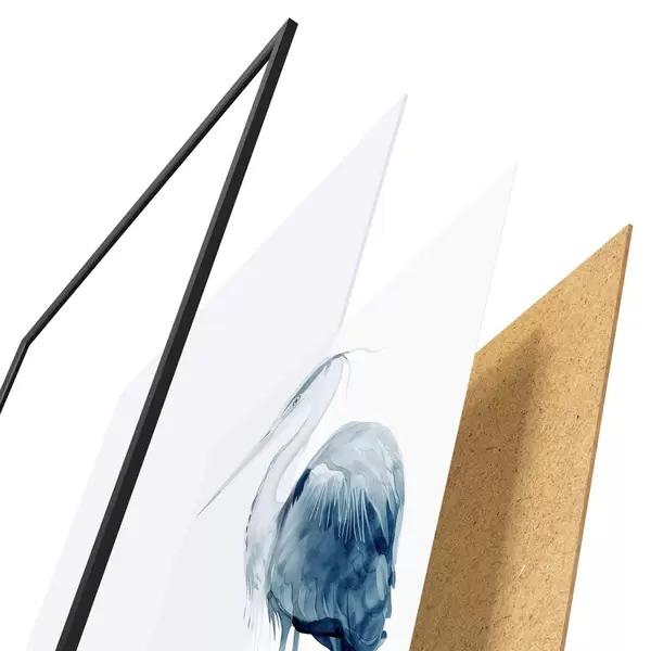 Plagát sa skladá z rámu, plexiskla, vytlačeného obrazu a podkladu z drevotriesky. Plagát možno okamžite zavesiť na stenu vďaka úchytom na zadnej strane.