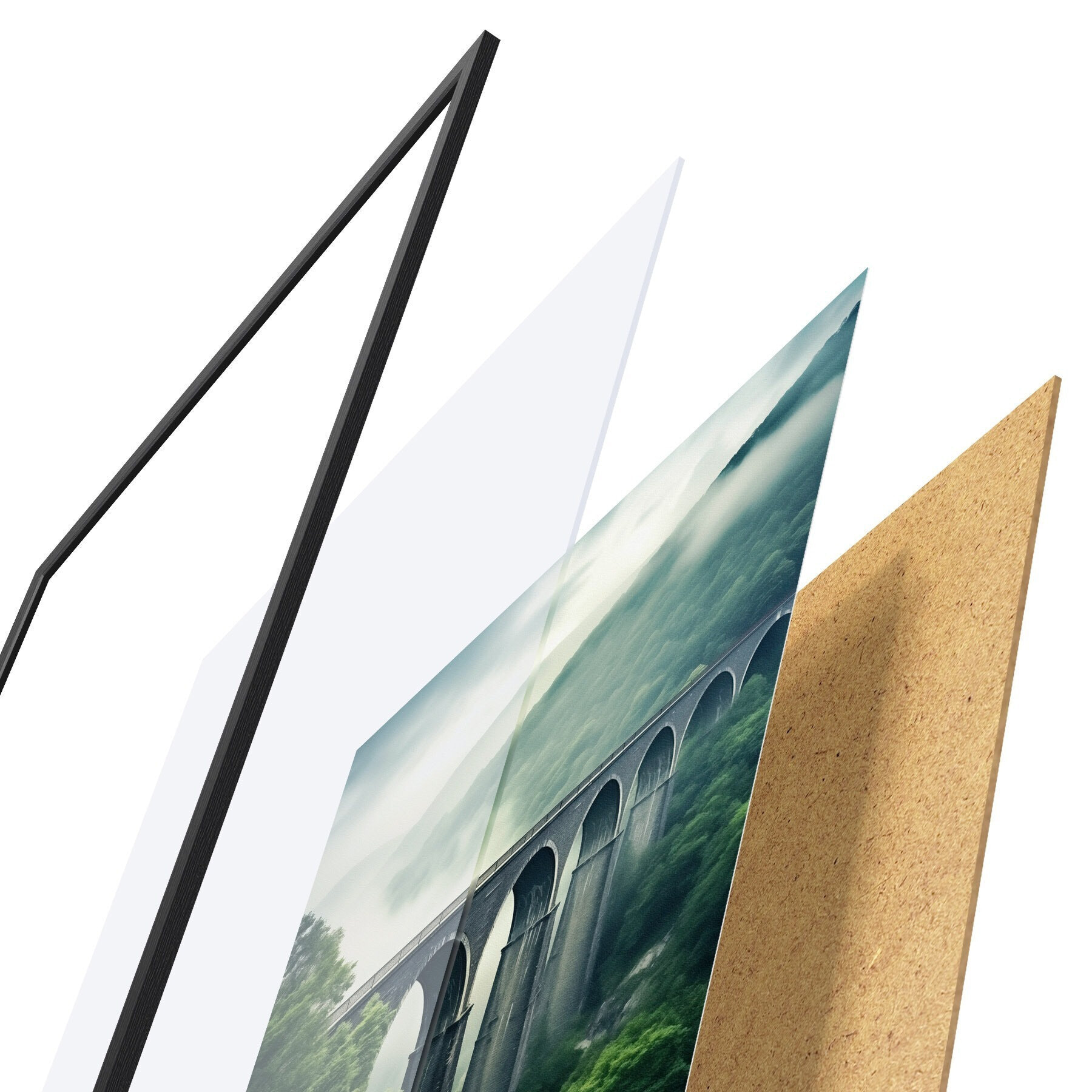 Plagát sa skladá z rámu, plexiskla, vytlačeného obrazu a podkladu z drevotriesky. Plagát možno okamžite zavesiť na stenu vďaka úchytom na zadnej strane.