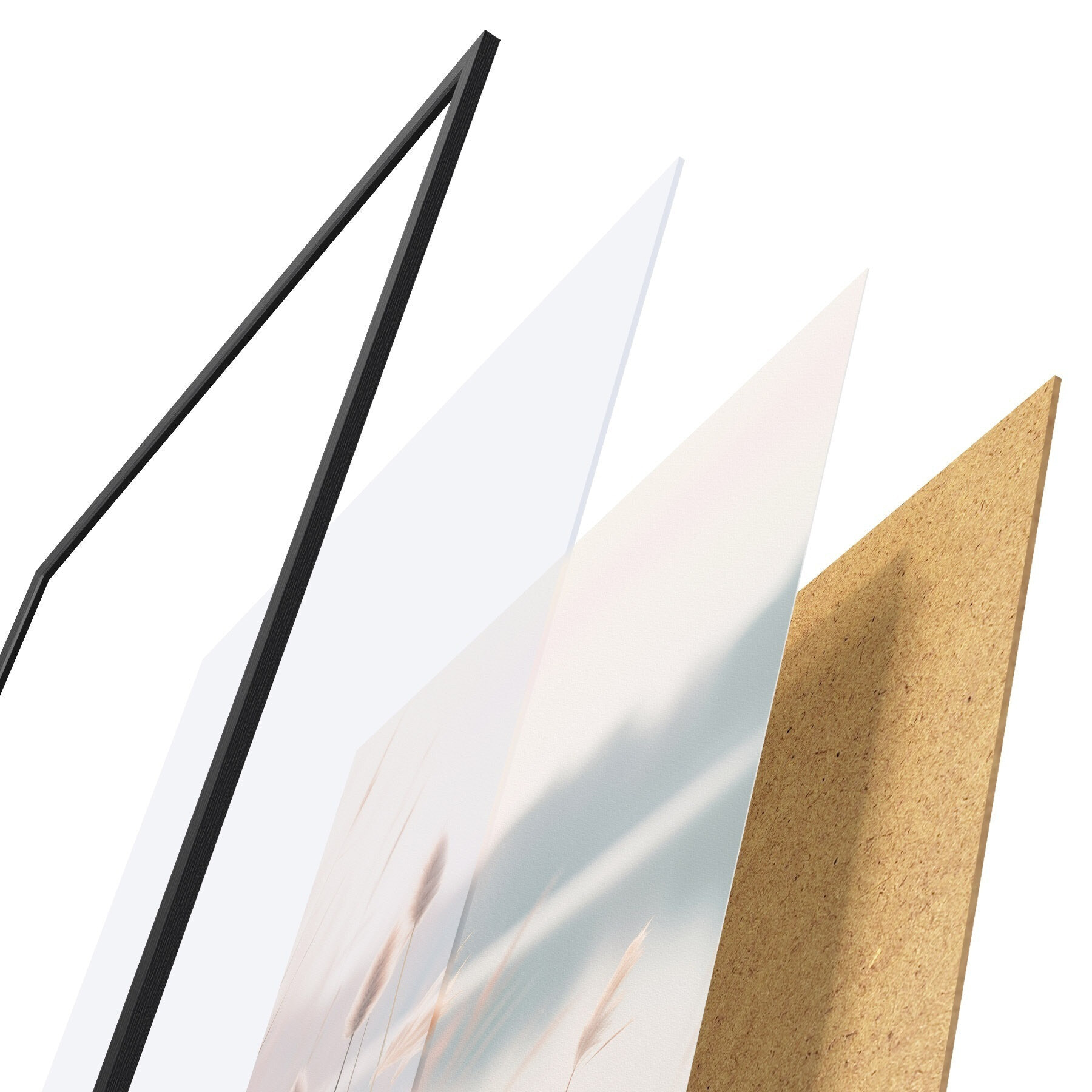 Plagát sa skladá z rámu, plexiskla, vytlačeného obrazu a podkladu z drevotriesky. Plagát možno okamžite zavesiť na stenu vďaka úchytom na zadnej strane.