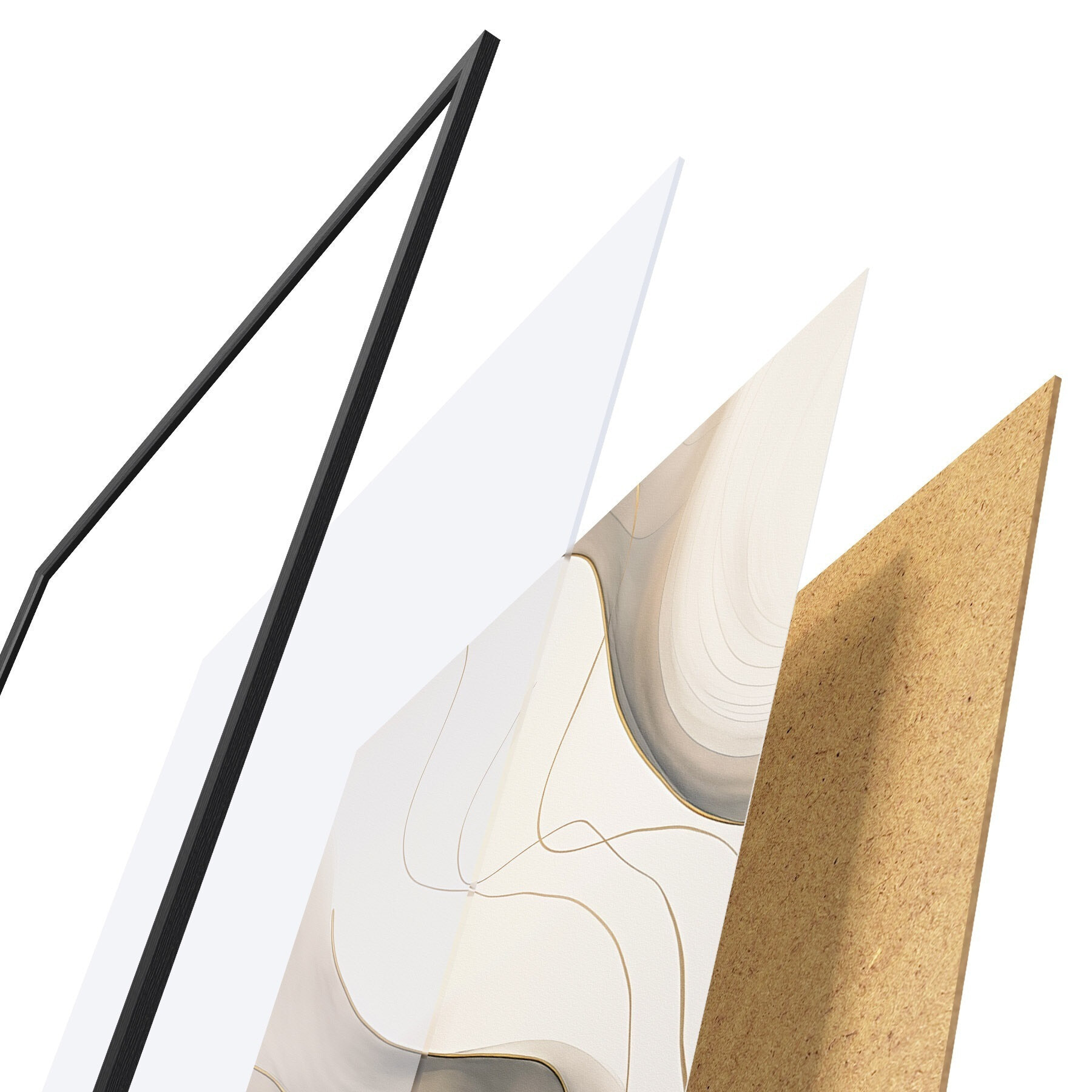 Plagát sa skladá z rámu, plexiskla, vytlačeného obrazu a podkladu z drevotriesky. Plagát možno okamžite zavesiť na stenu vďaka úchytom na zadnej strane.