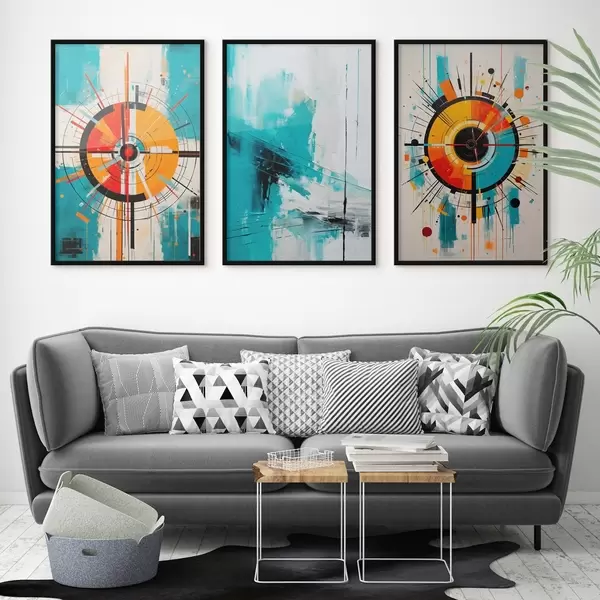 Plagáty Radiálny abstraktný vzor s tyrkysovými a oranžovými výbuchmi Nr d00973