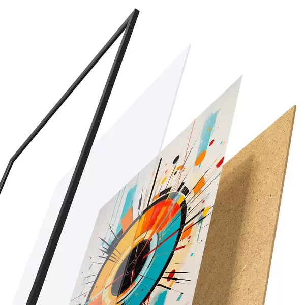 Plagát sa skladá z rámu, plexiskla, vytlačeného obrazu a podkladu z drevotriesky. Plagát možno okamžite zavesiť na stenu vďaka úchytom na zadnej strane.