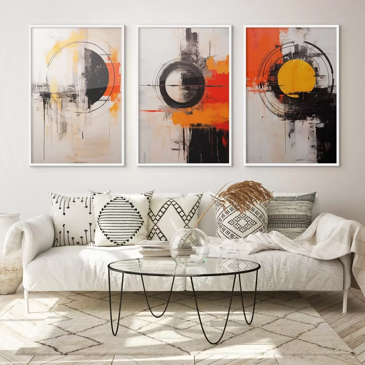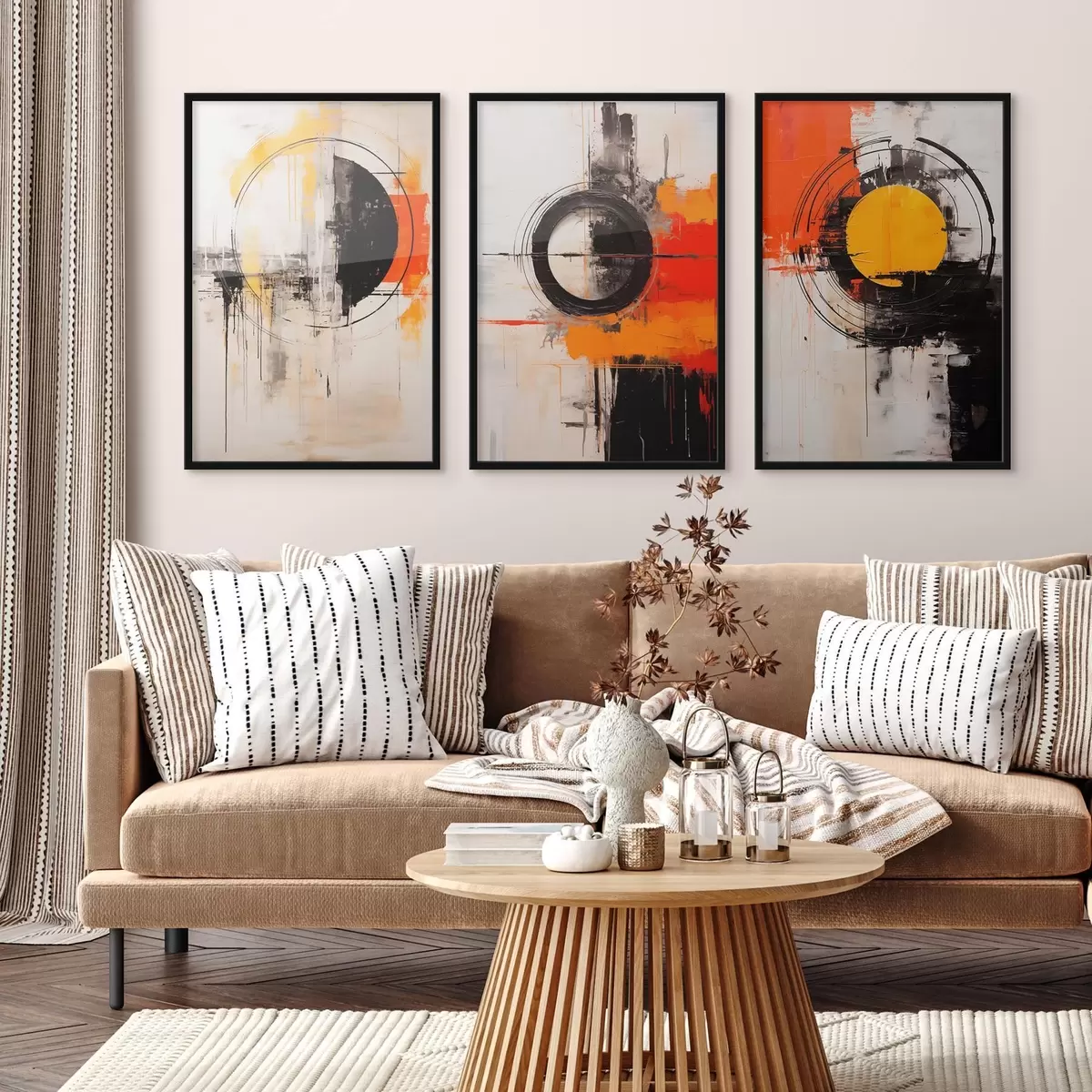 Plagáty Textúrované kruhy a výrazné ťahy v čiernej, okrovej a oranžovej farbe Nr d00974
