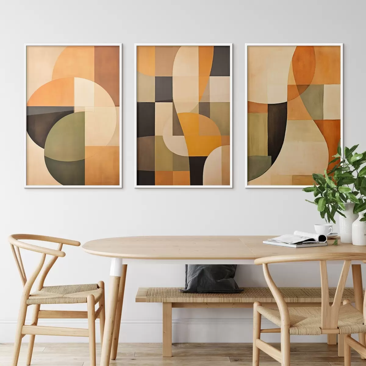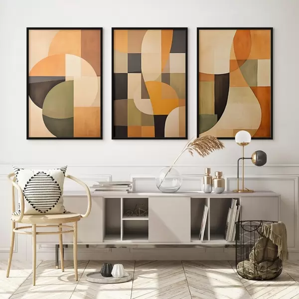 Plagáty Mäkké geometrické bloky v béžovej, terakotovej a šalviovej farbe Nr d00975