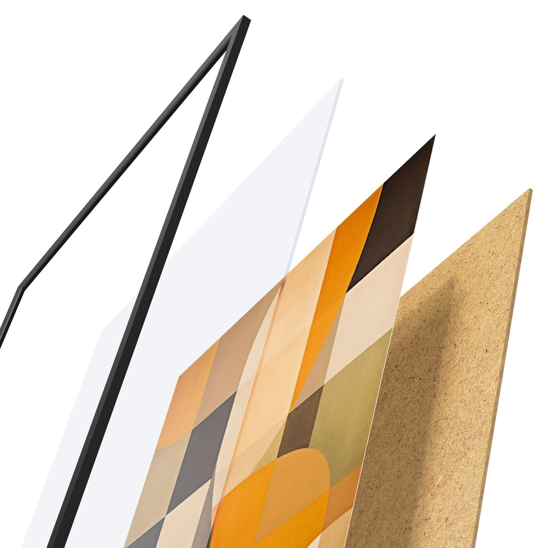 Plagát sa skladá z rámu, plexiskla, vytlačeného obrazu a podkladu z drevotriesky. Plagát možno okamžite zavesiť na stenu vďaka úchytom na zadnej strane.