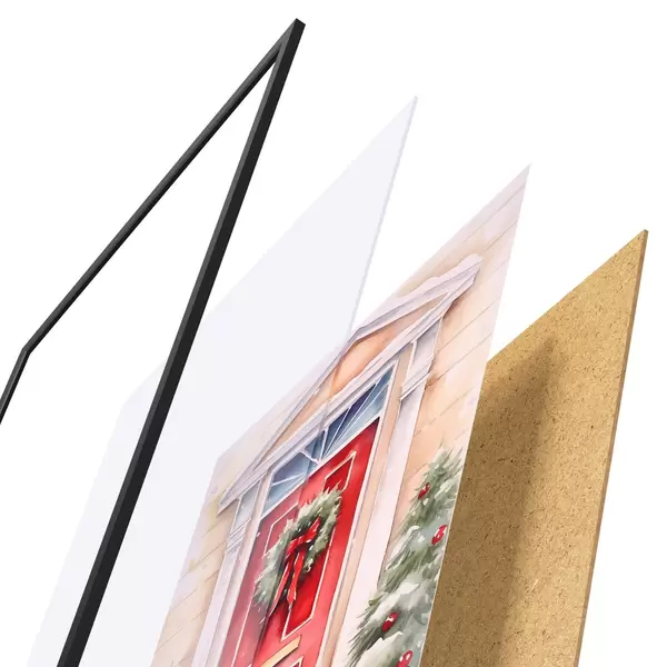 Plagát sa skladá z rámu, plexiskla, vytlačeného obrazu a podkladu z drevotriesky. Plagát možno okamžite zavesiť na stenu vďaka úchytom na zadnej strane.