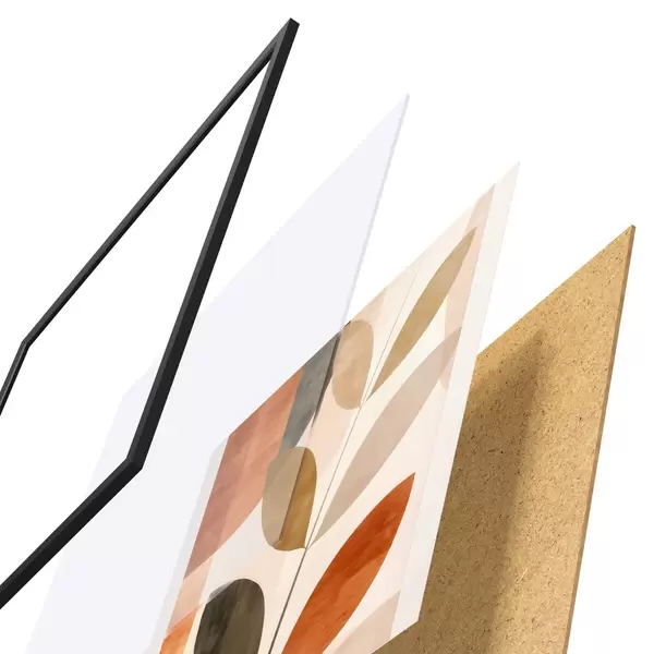 Plagát sa skladá z rámu, plexiskla, vytlačeného obrazu a podkladu z drevotriesky. Plagát možno okamžite zavesiť na stenu vďaka úchytom na zadnej strane.