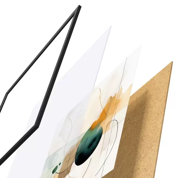Plagát sa skladá z rámu, plexiskla, vytlačeného obrazu a podkladu z drevotriesky. Plagát možno okamžite zavesiť na stenu vďaka úchytom na zadnej strane.