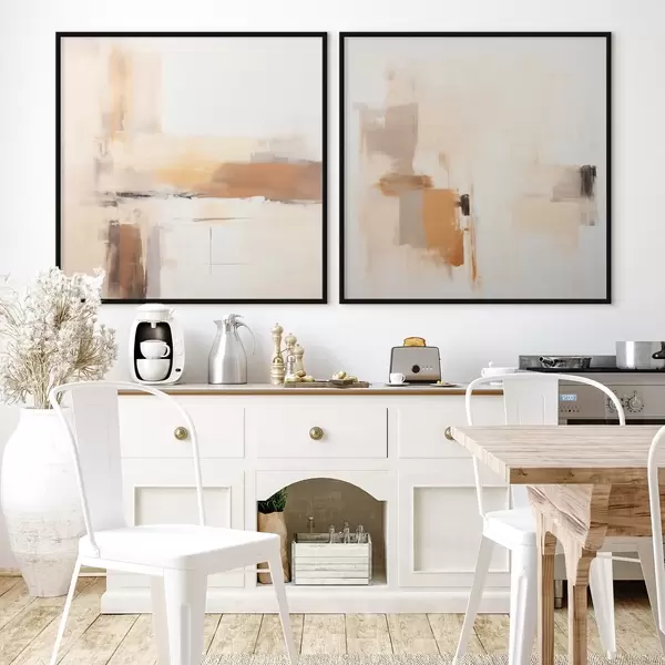Plagáty Štylizovaná abstrakcia s teplými odtieňmi vo formáte diptychu Nr d00988