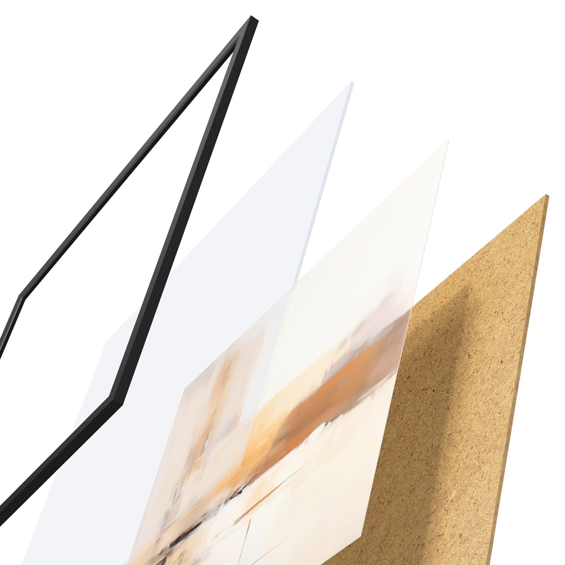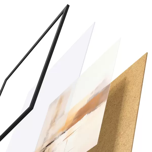 Plagát sa skladá z rámu, plexiskla, vytlačeného obrazu a podkladu z drevotriesky. Plagát možno okamžite zavesiť na stenu vďaka úchytom na zadnej strane.