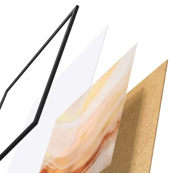 Plagát sa skladá z rámu, plexiskla, vytlačeného obrazu a podkladu z drevotriesky. Plagát možno okamžite zavesiť na stenu vďaka úchytom na zadnej strane.