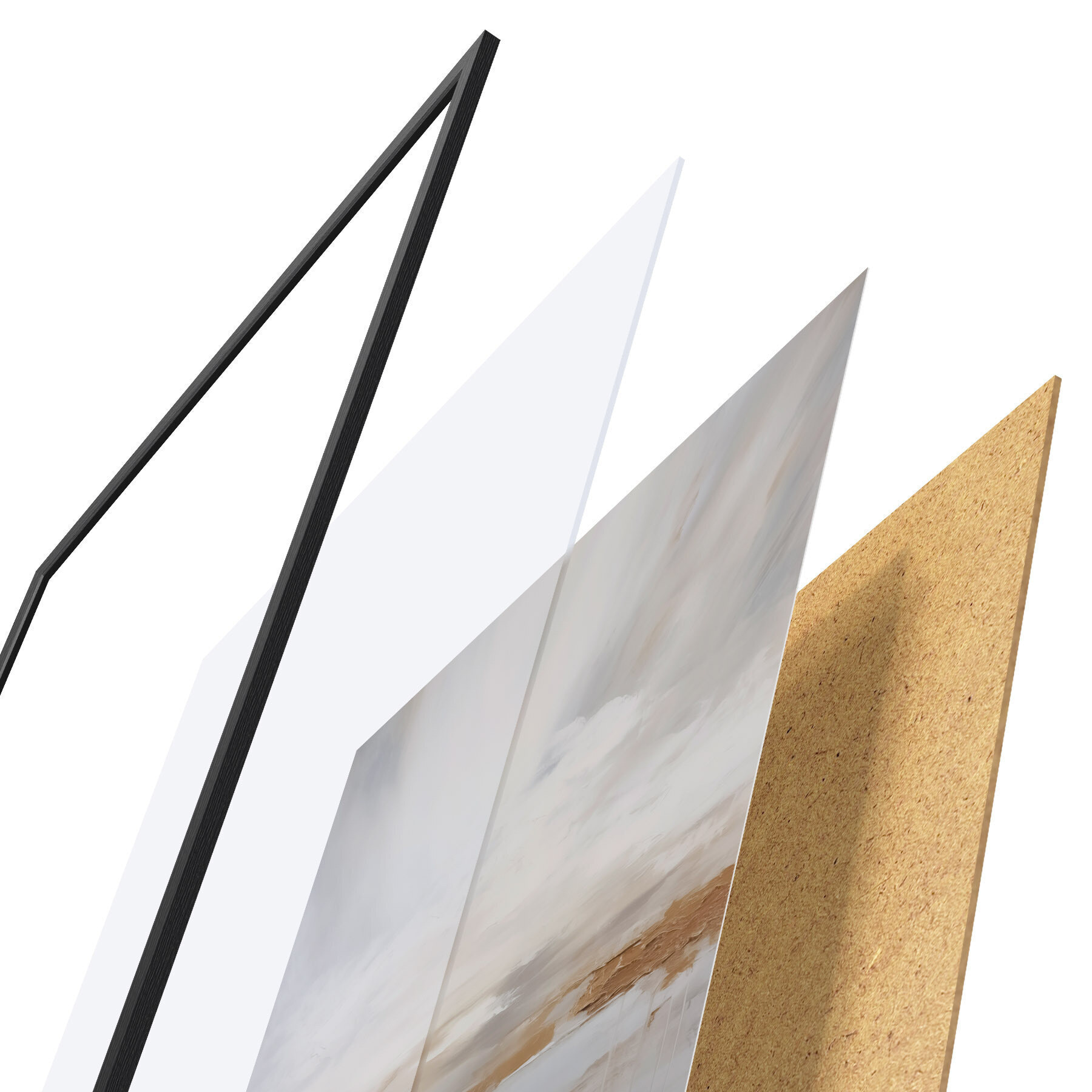 Plagát sa skladá z rámu, plexiskla, vytlačeného obrazu a podkladu z drevotriesky. Plagát možno okamžite zavesiť na stenu vďaka úchytom na zadnej strane.
