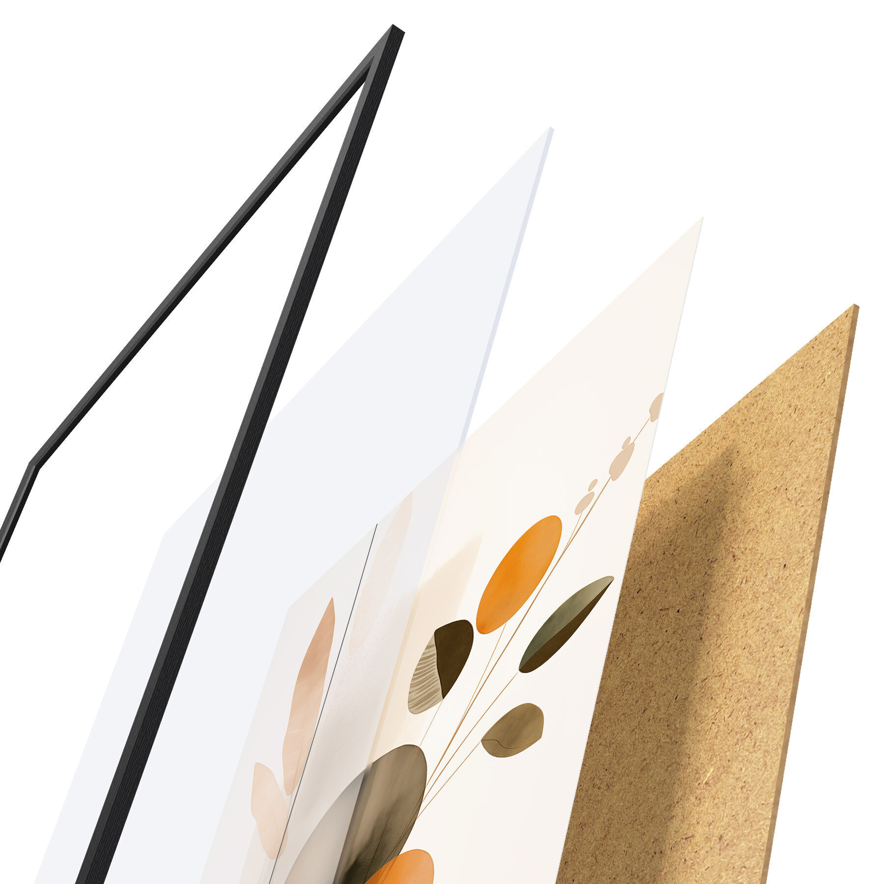 Plagát sa skladá z rámu, plexiskla, vytlačeného obrazu a podkladu z drevotriesky. Plagát možno okamžite zavesiť na stenu vďaka úchytom na zadnej strane.
