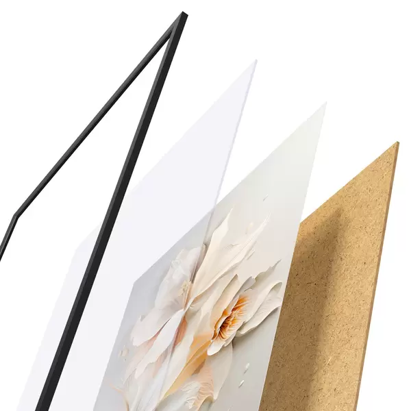 Plagát sa skladá z rámu, plexiskla, vytlačeného obrazu a podkladu z drevotriesky. Plagát možno okamžite zavesiť na stenu vďaka úchytom na zadnej strane.