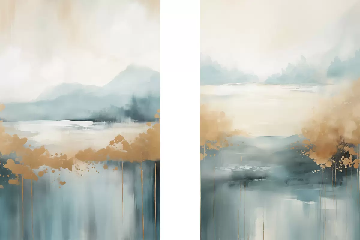 Úvodná stránkaKatalóg plagátovModulárne posteryPlagáty Abstraktná krajina s horami a jazerom v modrozelenej a textúrovanej žltej farbe, jemné ťahy štetcom, minimalistické umelecké dielo Nr d01012