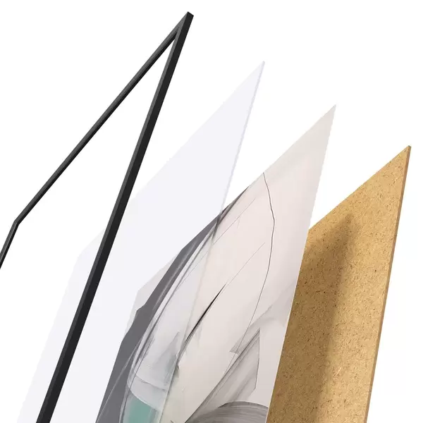 Plagát sa skladá z rámu, plexiskla, vytlačeného obrazu a podkladu z drevotriesky. Plagát možno okamžite zavesiť na stenu vďaka úchytom na zadnej strane.