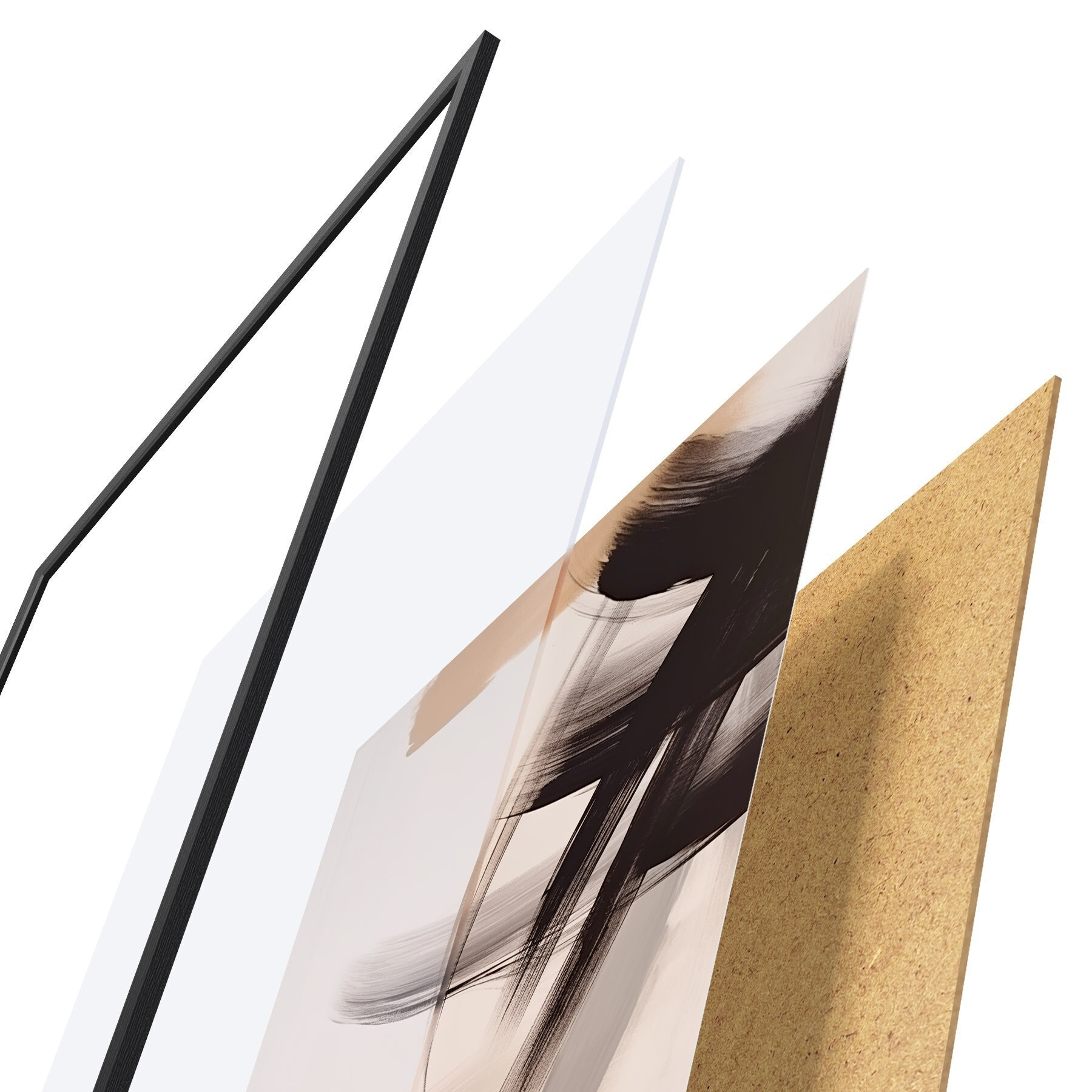 Plagát sa skladá z rámu, plexiskla, vytlačeného obrazu a podkladu z drevotriesky. Plagát možno okamžite zavesiť na stenu vďaka úchytom na zadnej strane.