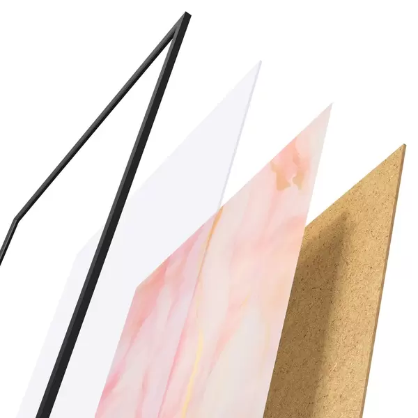 Plagát sa skladá z rámu, plexiskla, vytlačeného obrazu a podkladu z drevotriesky. Plagát možno okamžite zavesiť na stenu vďaka úchytom na zadnej strane.