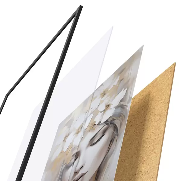 Plagát sa skladá z rámu, plexiskla, vytlačeného obrazu a podkladu z drevotriesky. Plagát možno okamžite zavesiť na stenu vďaka úchytom na zadnej strane.