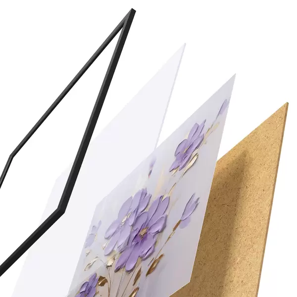 Plagát sa skladá z rámu, plexiskla, vytlačeného obrazu a podkladu z drevotriesky. Plagát možno okamžite zavesiť na stenu vďaka úchytom na zadnej strane.