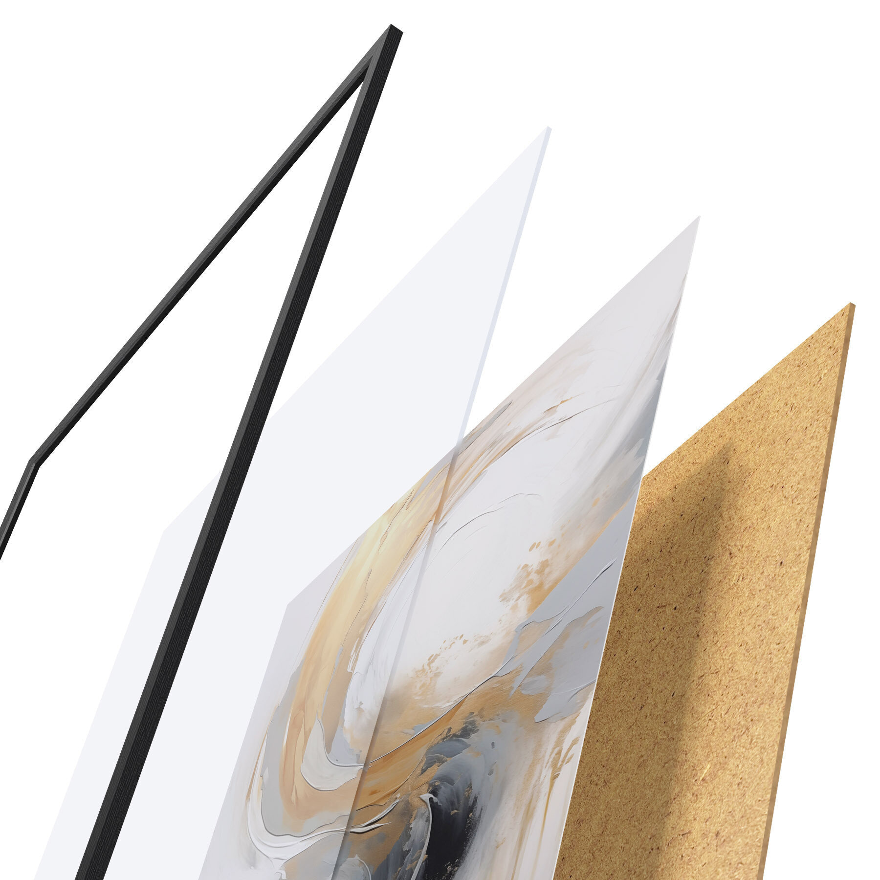 Plagát sa skladá z rámu, plexiskla, vytlačeného obrazu a podkladu z drevotriesky. Plagát možno okamžite zavesiť na stenu vďaka úchytom na zadnej strane.