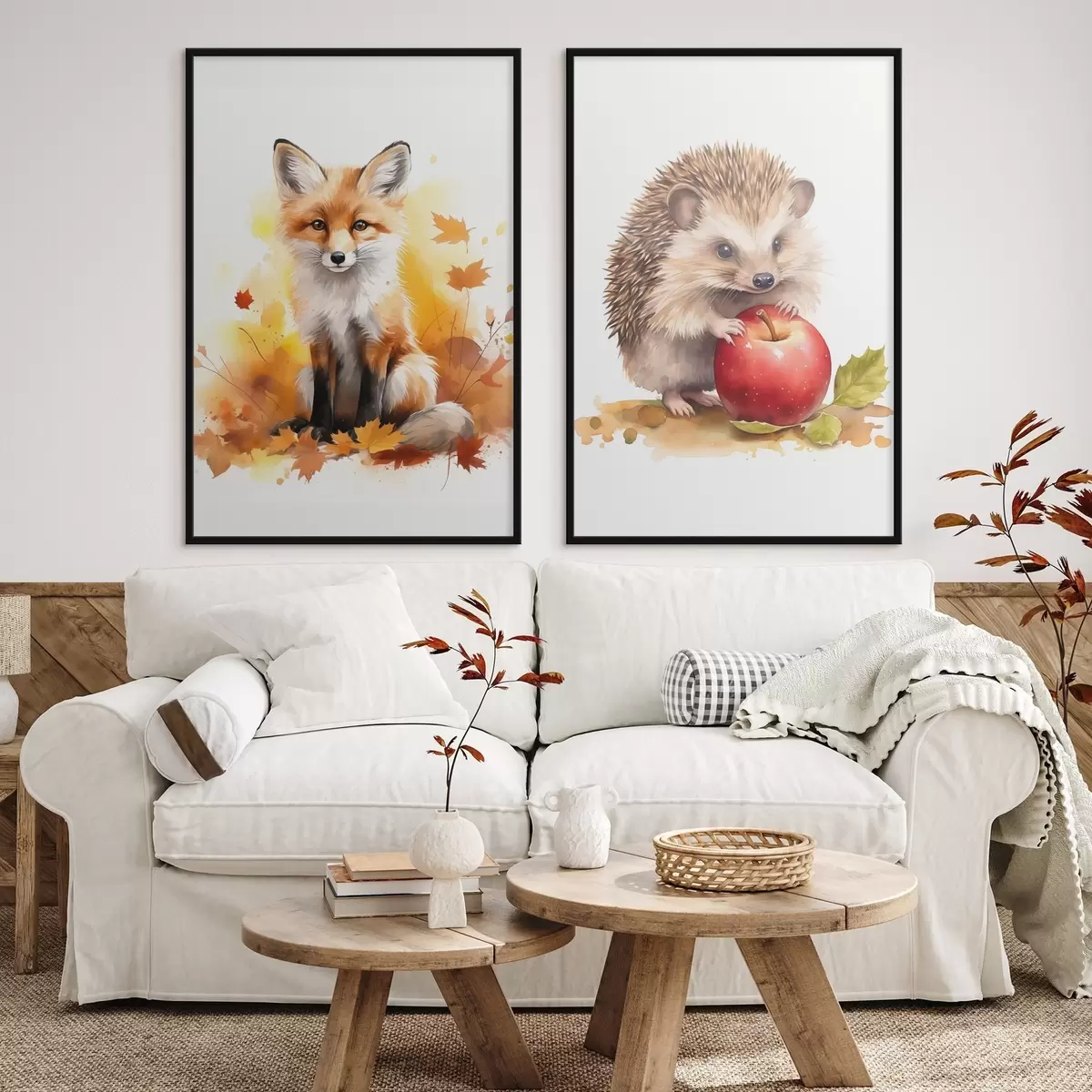Plagáty Líška a jež, imitácia akvarelu Nr d01050